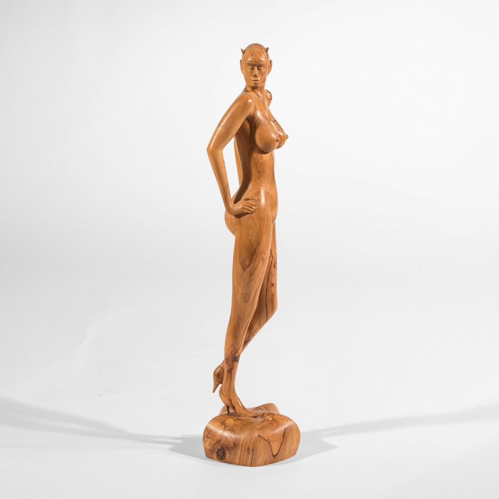 Kleine Teufelin In Gallerie, Skulpturen aus Holz Skulptur aus massiver Pitchpineca. 34 cm hoch Preis auf Anfrage per Mail aninfo@obermeier-art.de Februar 3, 2021